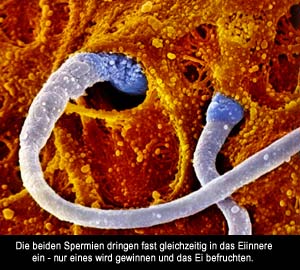 Nur ein Spermium kann ins Ei eindringen und es befruchten.