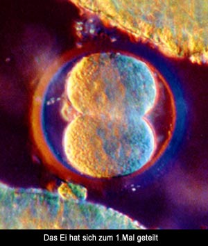 Ei zum erstenmal. Es hat jetzt 2 Zellen, jede von ihnen enthält die