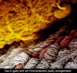 im Eileiter ist von feinen Flimmerhärchen bedeckt, die alle in das