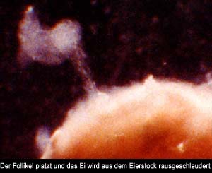 Eiblase (Follikel) platzt, und die Flüssigkeit, mit der die Eiblase