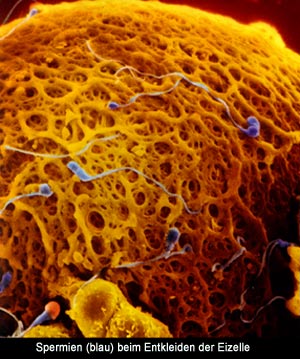 4) Die erste Begegnung Ei und Spermium - Die Eizelle wird "entkleidet":